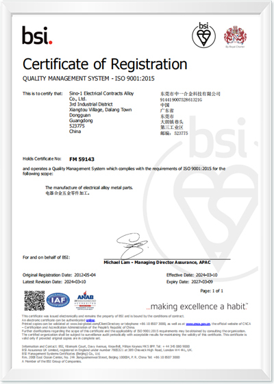 Built on a foundation of advanced technology, standardized processes, and consistent quality, Sino-1 has earned the trust of over 100 renowned enterprises across the globe. Our strong in-house R&D team and commitment to high-quality service enable us to meet diverse and demanding customer requirements. We strictly adhere to international standards including RoHS, REACH, and ISO/IATF-16949:2016, ISO-9001:2015 certification, which we obtained in March 2012, reinforcing our position as a reliable partner in the high-end electrical alloy supply chain.